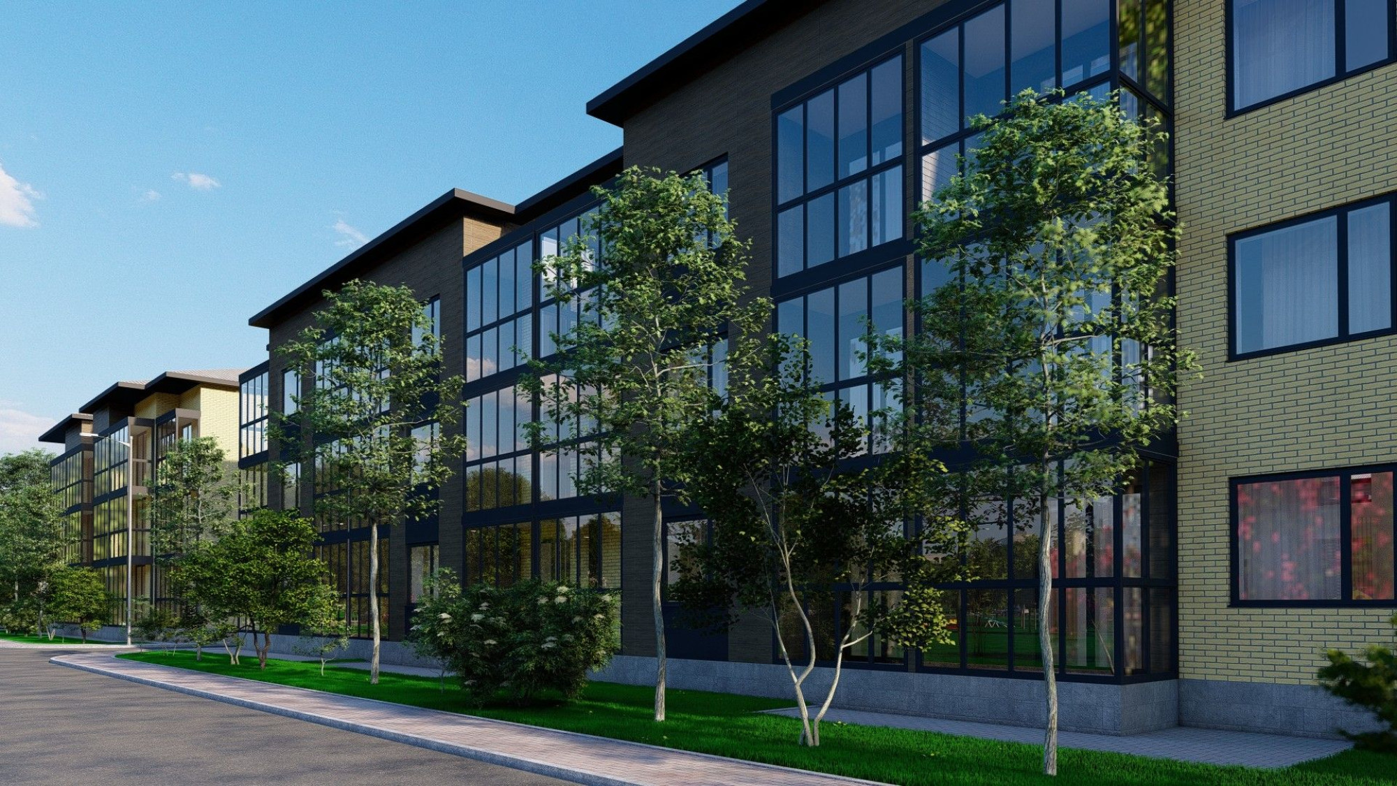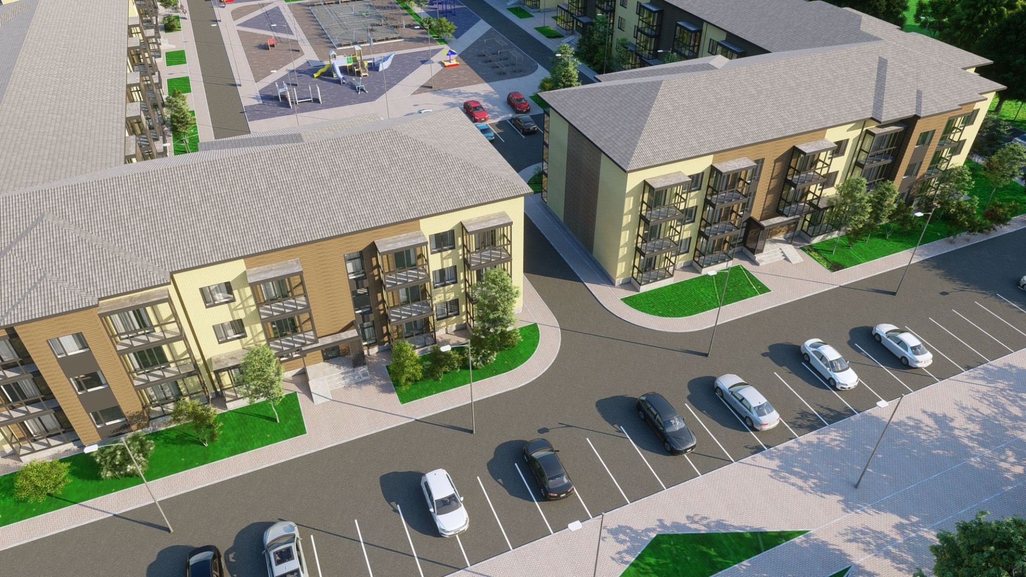 транспортная развязка, магазины, места отдыха и развлечений, парковые зоны.